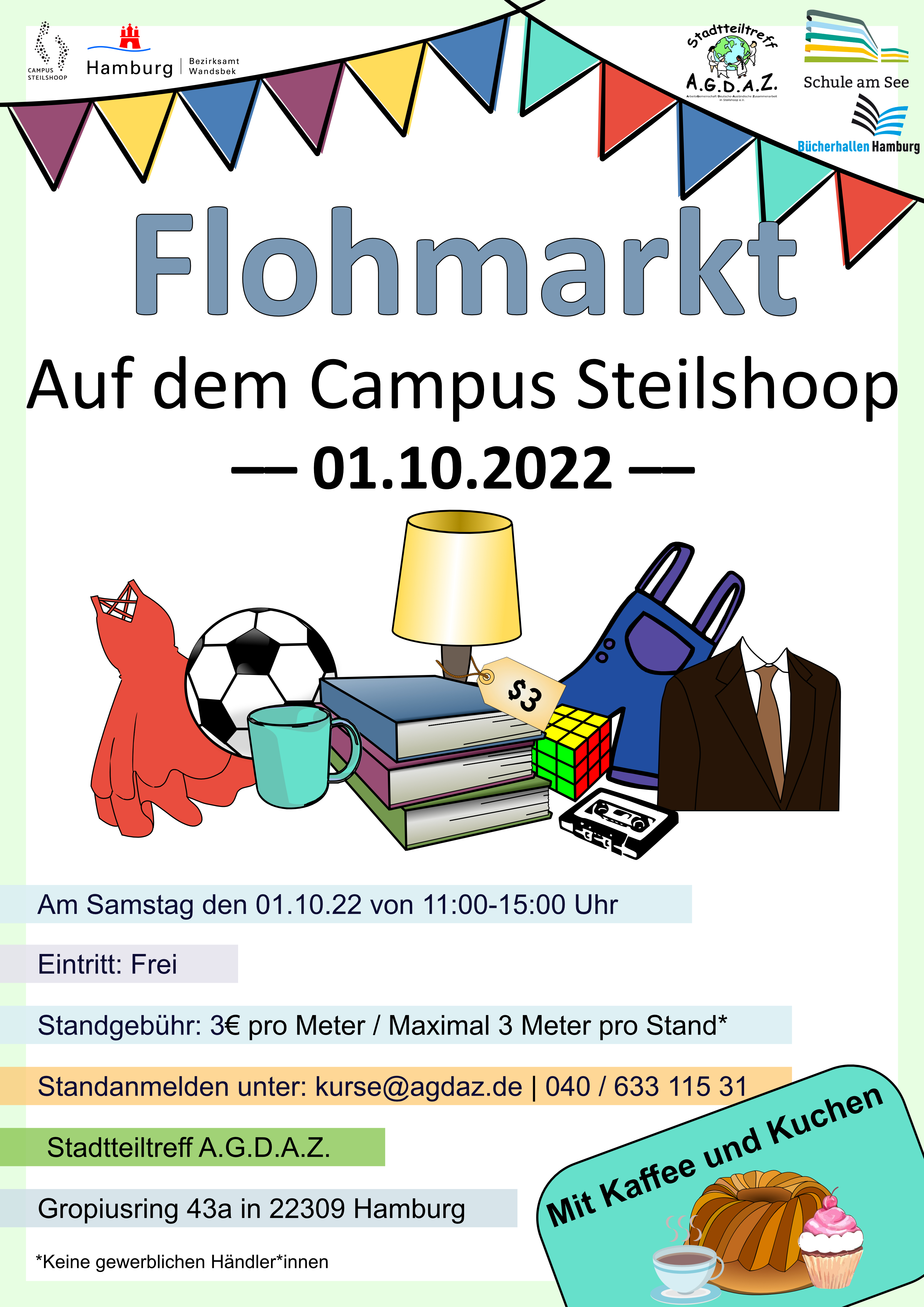 Standanmeldung unter kurse@agdaz.de / (040) 633 115 31 Standgebühr: 3€ pro Meter / Maximal 3 Meter pro Stand*